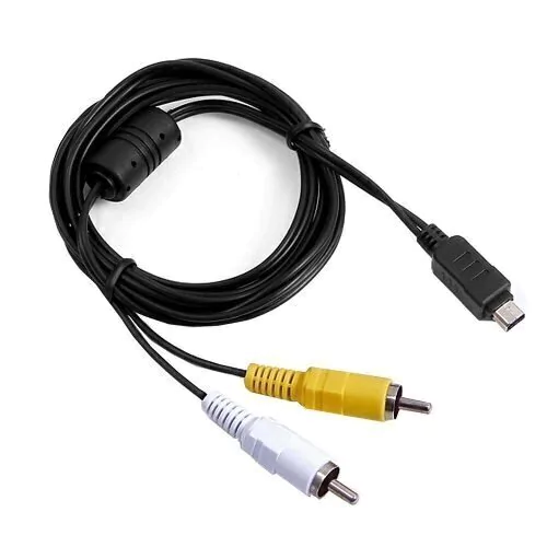 El cable proporciona una conexión de audio y video desde el puerto USB de la cámara digital a las conexiones RCA de la TV.