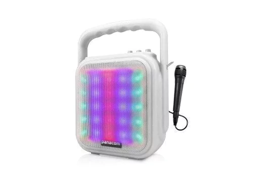 Parlante portátil tipo karaoke con micrófono, luces led, conexión bluetooth, USB y compatibilidad con tarjetas SD. Incluye función de grabación de voz y manija de transporte. Con este pequeño y potente equipo, podrás llevar tu música favorita a todas partes. Por su poco peso, sus vibrantes colores y sus múltiples puertos, se convertirá en tu compañero ideal para todas tus actividades al aire libre, y por qué no en el living o en tu habitación. CARACTERÍSTICAS • Conexiones USB / Tarjeta de Memoria • Conexión Bluetooth • Incluye micrófono con cable • Batería recargable • Karaoke • Entrada para micrófono • Función Grabado • Woofer Unit: 5.25" • Batería de litio: 1200mAH • Potencia: 20W RMS