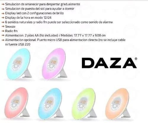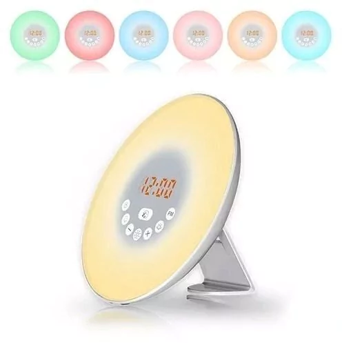 Radio reloj despertador con luz simulación de amanecer y atardecer gradial con radio FM.